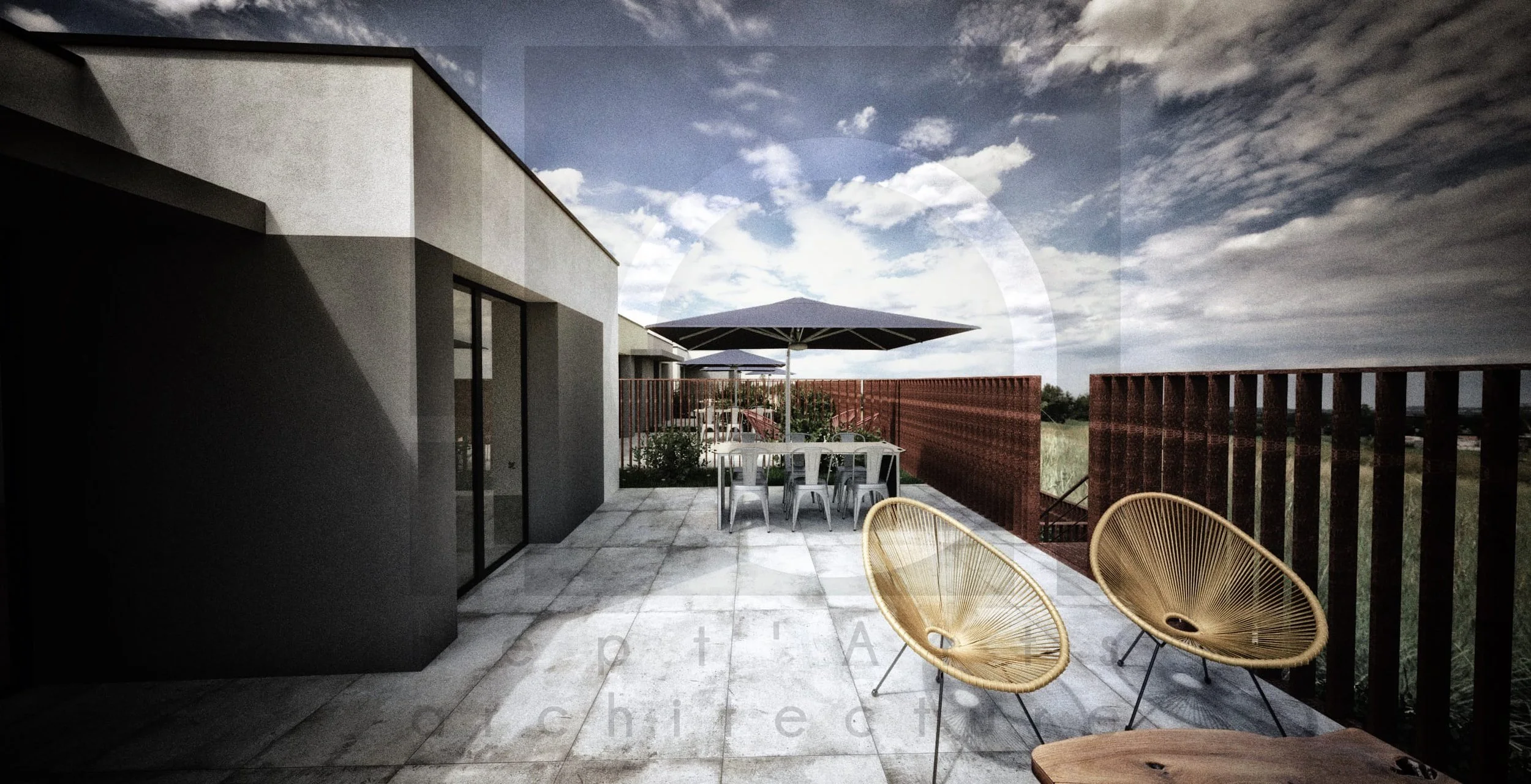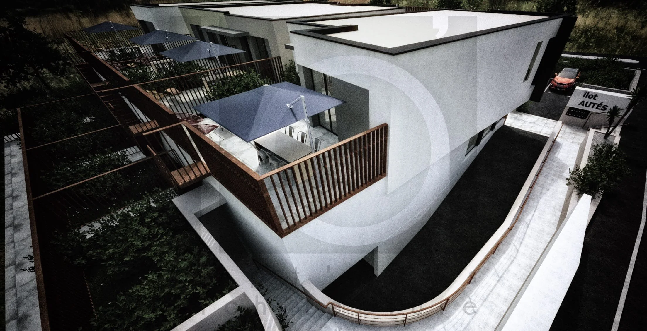 Programme Ilot Autés . Vue sur terrasses logements /3