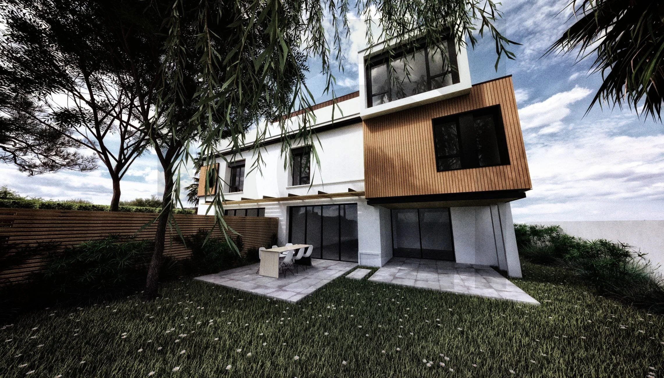 / Rénovation et extension moderne d’une maison existante des années 70 en maison familiale devant accueillir 3 logements